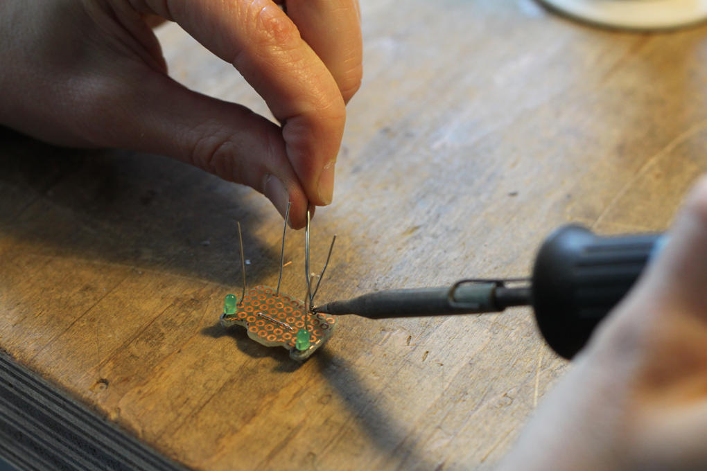 The LED eyes in progress. -- CC BY / Kati Hyyppä