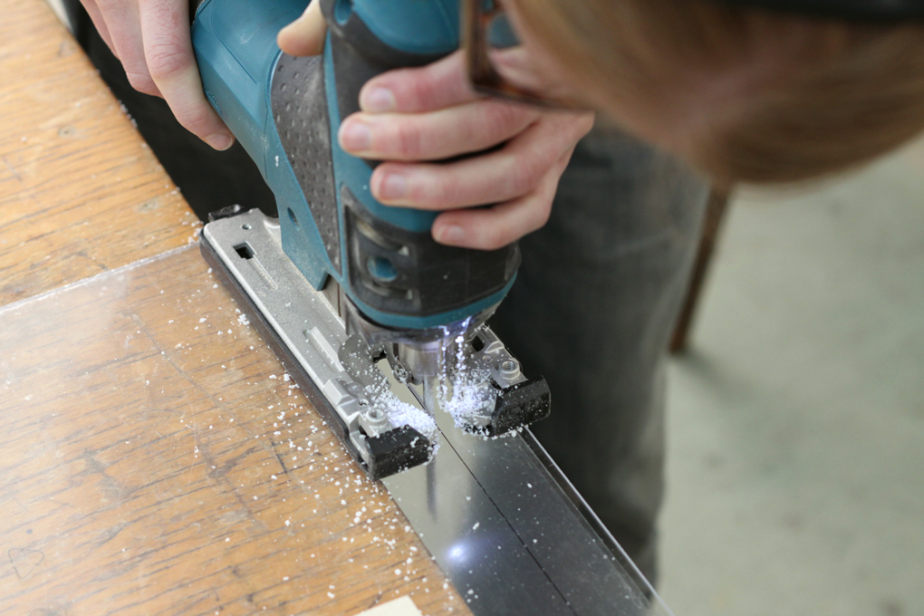 Measuring and sawing wood for the insect box. -- CC BY / Kati Hyyppä