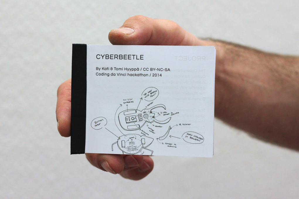 The Cyberbeetle has also a little booklet with project info and the credits for the open content used in the project. -- CC BY / Kati Hyyppä
