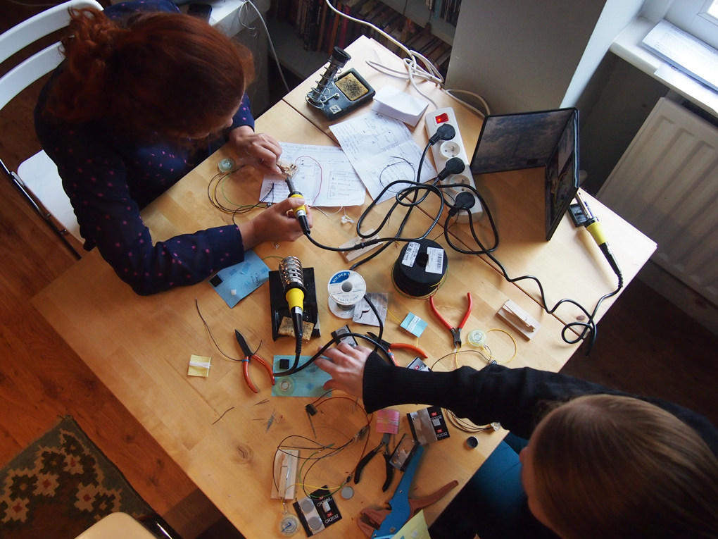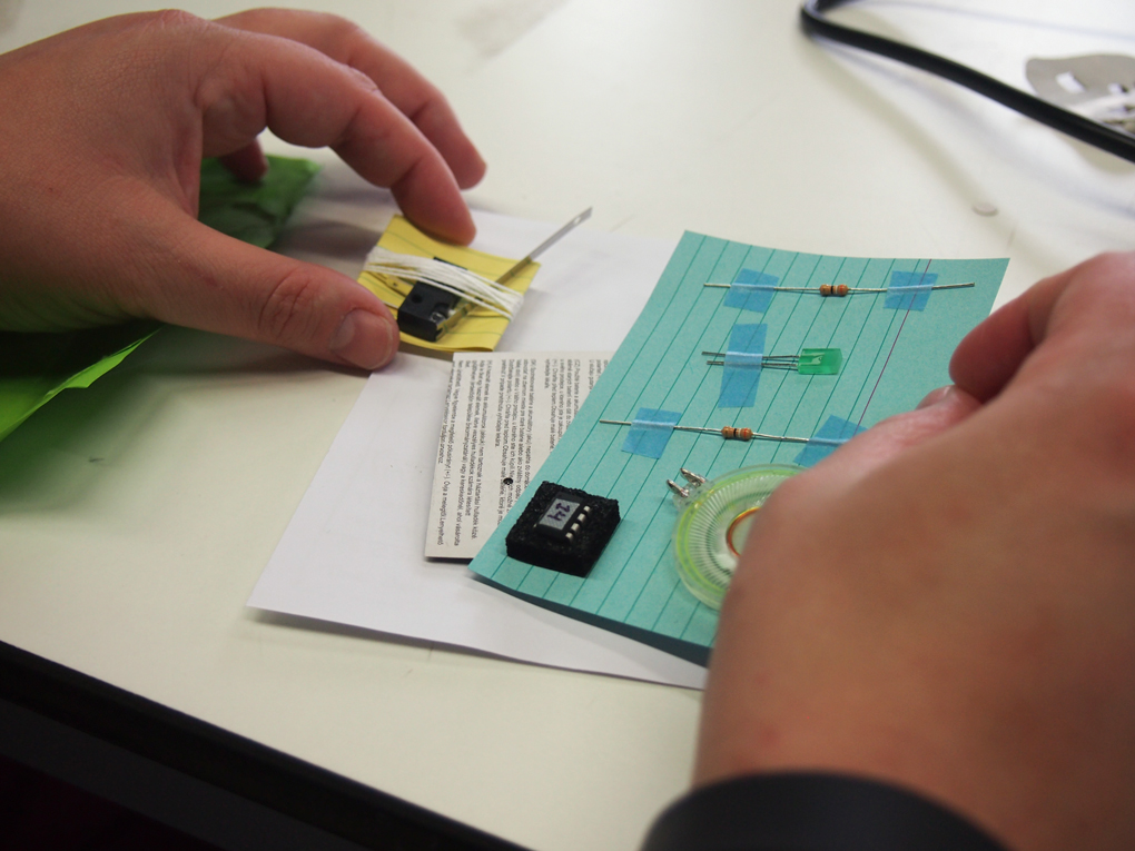Soldering the electronics turned out to be a bit more complicated than planned due to health and safety regulations, not to speak of few broken soldering irons. But eventually nearly all of the circuits worked as expected. / CC BY Sanna Marttila & Neea Laakso