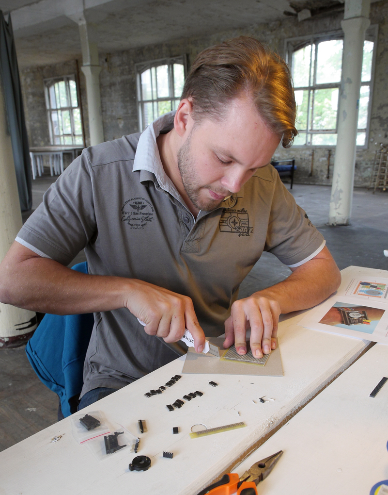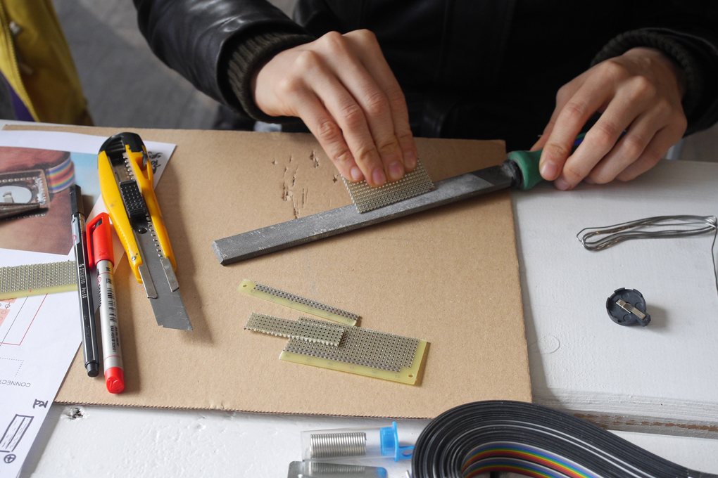 Producing happily pieces for the breadboard. / CC BY Kati Hyyppä