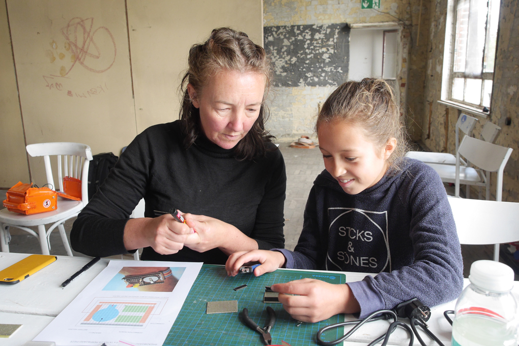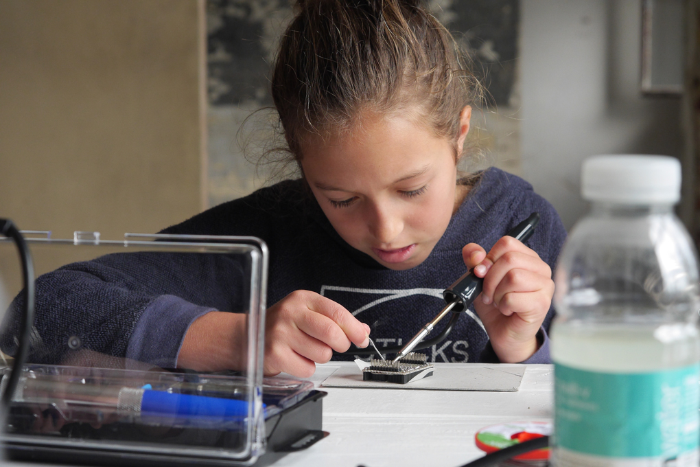 Soldering the middle parts. I could not believe that she was soldering for the first time, as it looked so professional! / CC BY Kati Hyyppä