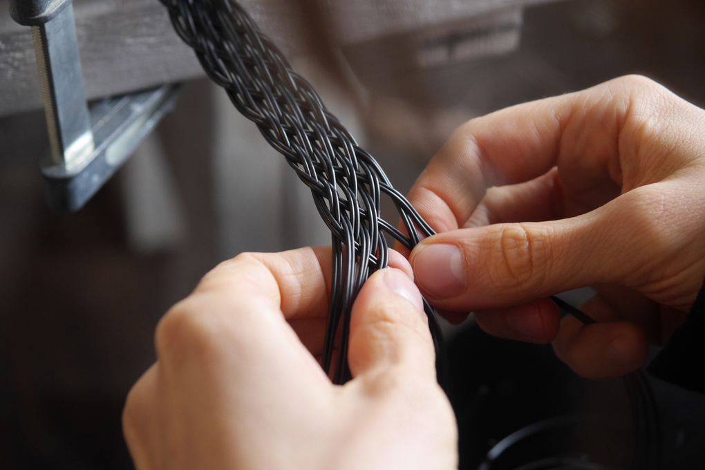 Weaving a wristband with wire. Black is always a classic choice. / CC BY Kati Hyyppä