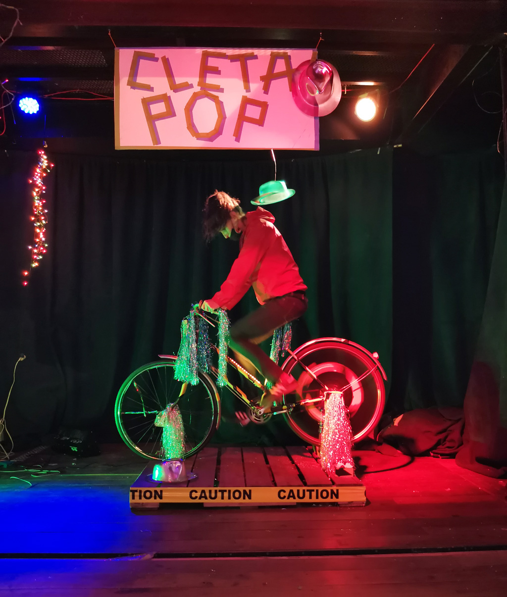 Guillaume modified a bicycle so that it can control music speed. / CC BY Niklas Roy & Kati Hyyppä