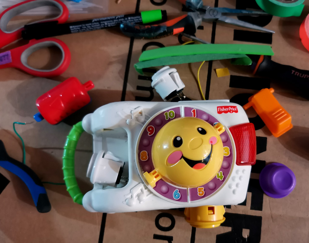 I made a game with small leftover toys such as this baby camera. / CC BY Niklas Roy & Kati Hyyppä