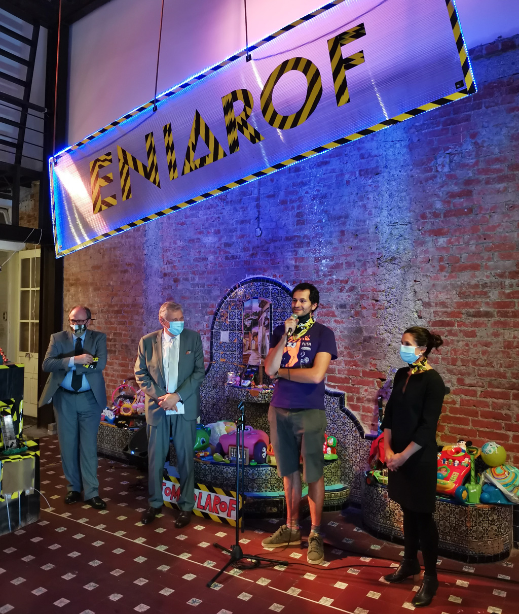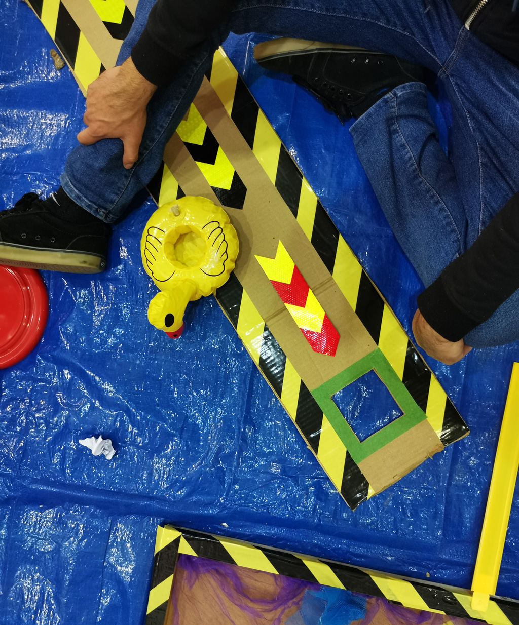 Eniarof is a pop-up DIY fun faire concept by Antonin Fourneau. Recycled toys, cardboard, wooden pallets and other materials serve as inspiration for attractions, which are built in a workshop. / CC BY Niklas Roy & Kati Hyyppä