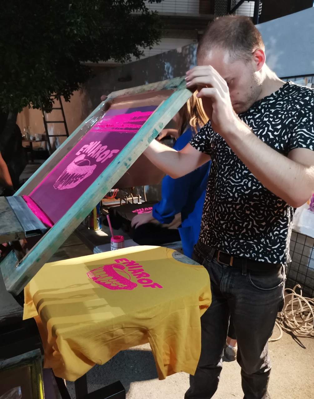 In the opening we also had lovely silk screen printing program and it was possible to get a cool Eniarof T-shirt. / CC BY Niklas Roy & Kati Hyyppä
