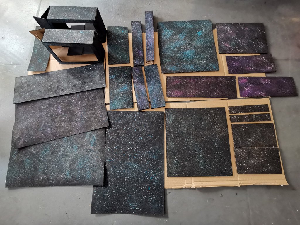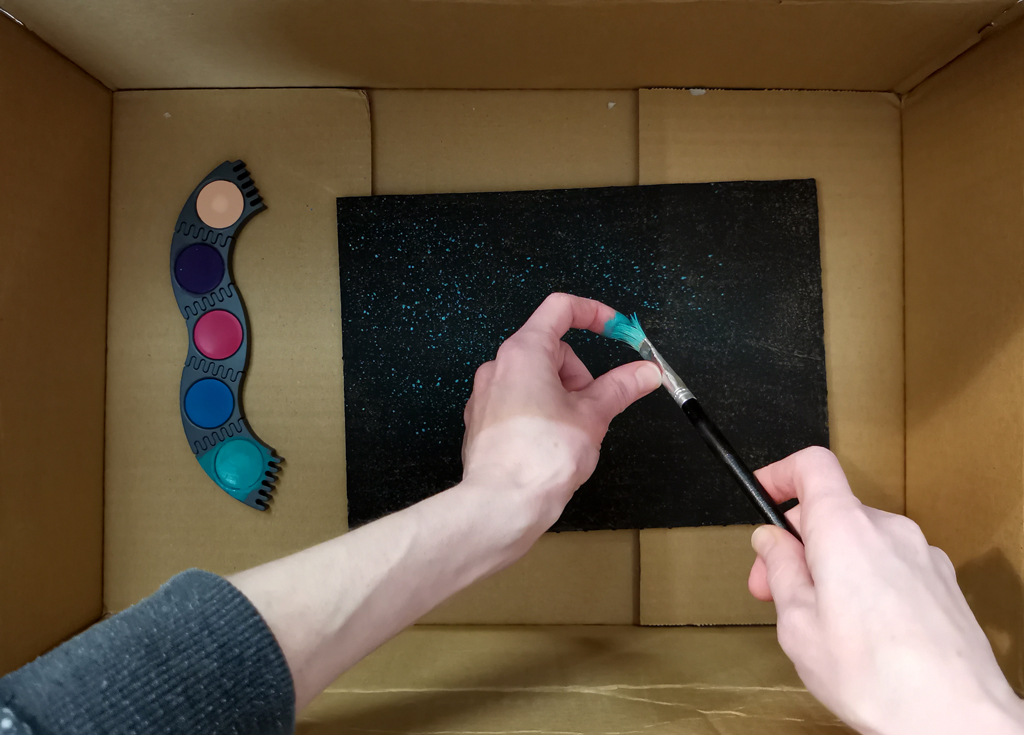 The black cardboard was given a spacey touch by sprinkling colourful paint on it. / Public domain