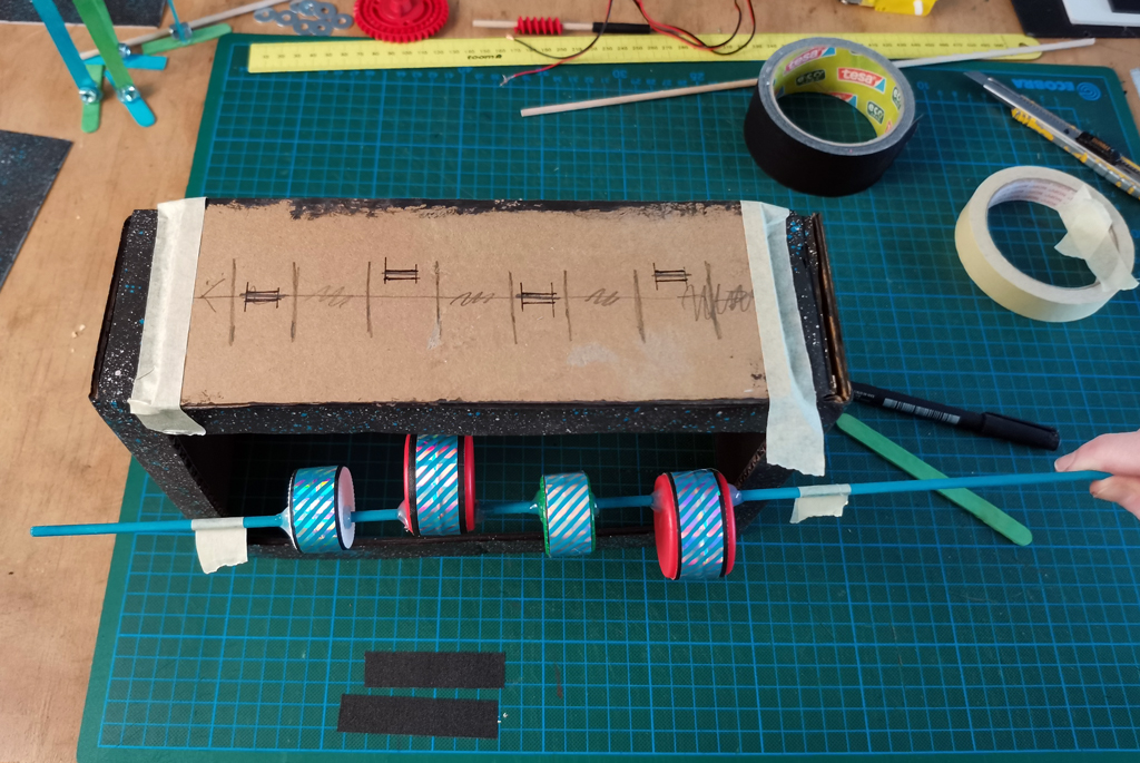 A second DIY mechanism containing caps was made for rotary movement. / Public domain