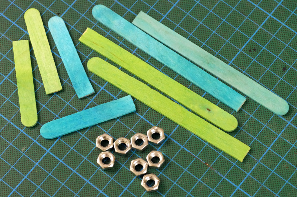 Popsicle sticks with nuts as weights were used as cam followers for the moving fungi. / Public domain