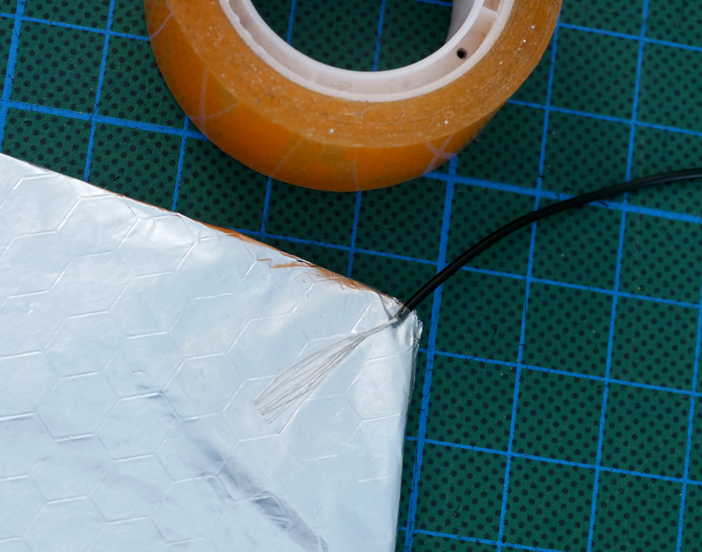 Ground wire connected to the power supply was taped on the aluminum foil piece. / Public domain