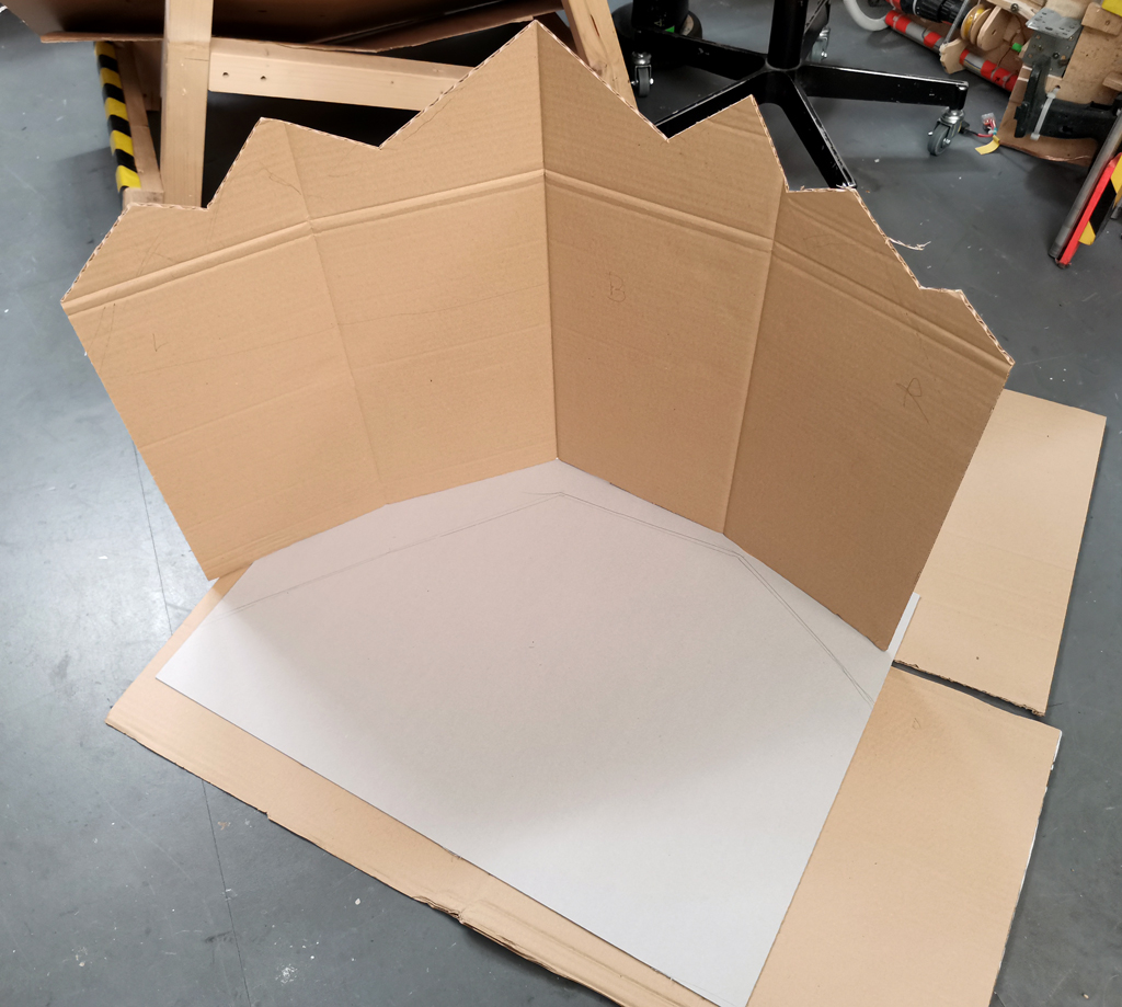 Holes for the cardboard fungi were cut based on the cap positions. / Public domain