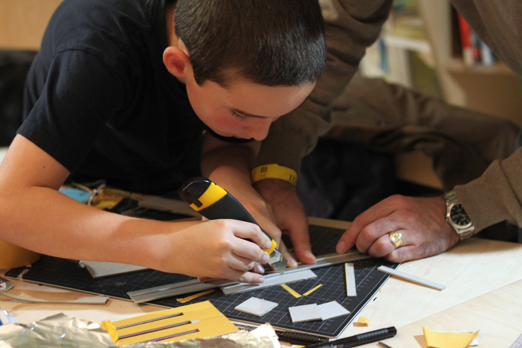 Cutting piano keys from sturdy cardboard. / CC BY Kati Hyyppä