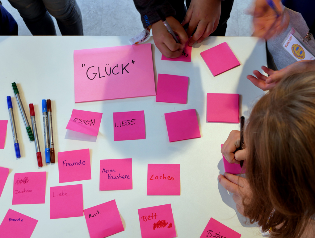 In the beginning of the workshop we did some 'design thinking' with post-it notes, mapping things that make us happy. / CC BY Kati Hyyppä