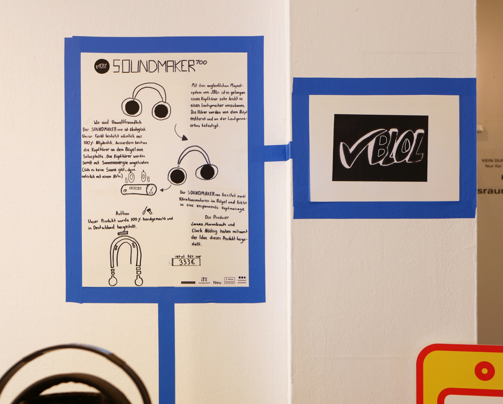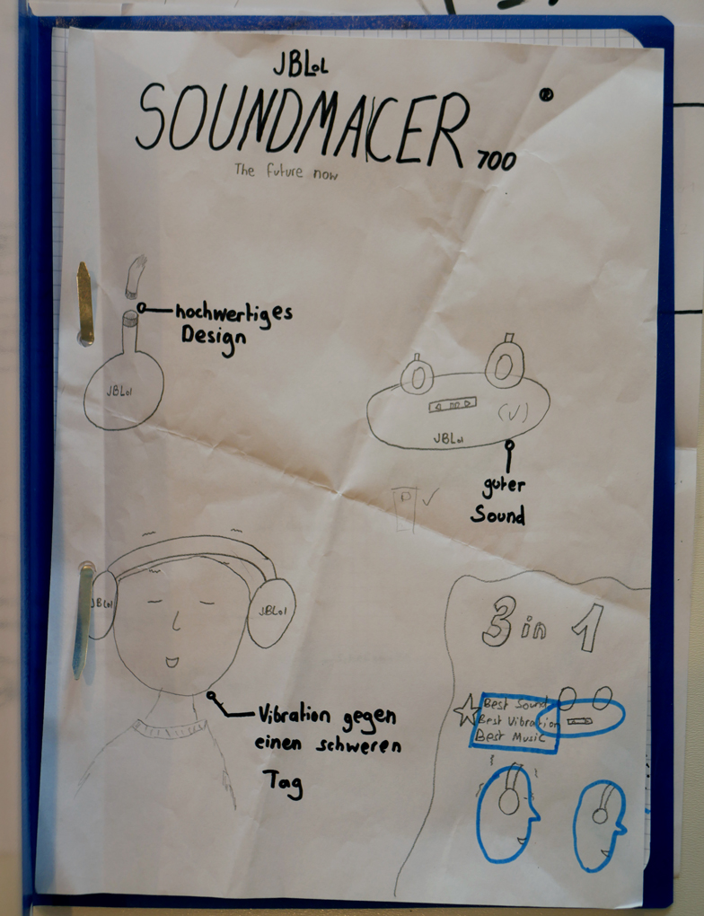 The 'Sounmaker' team created a whole folder to detail their concept, which involved a happiness-stimulating headphone and speaker set. / CC BY Kati Hyyppä