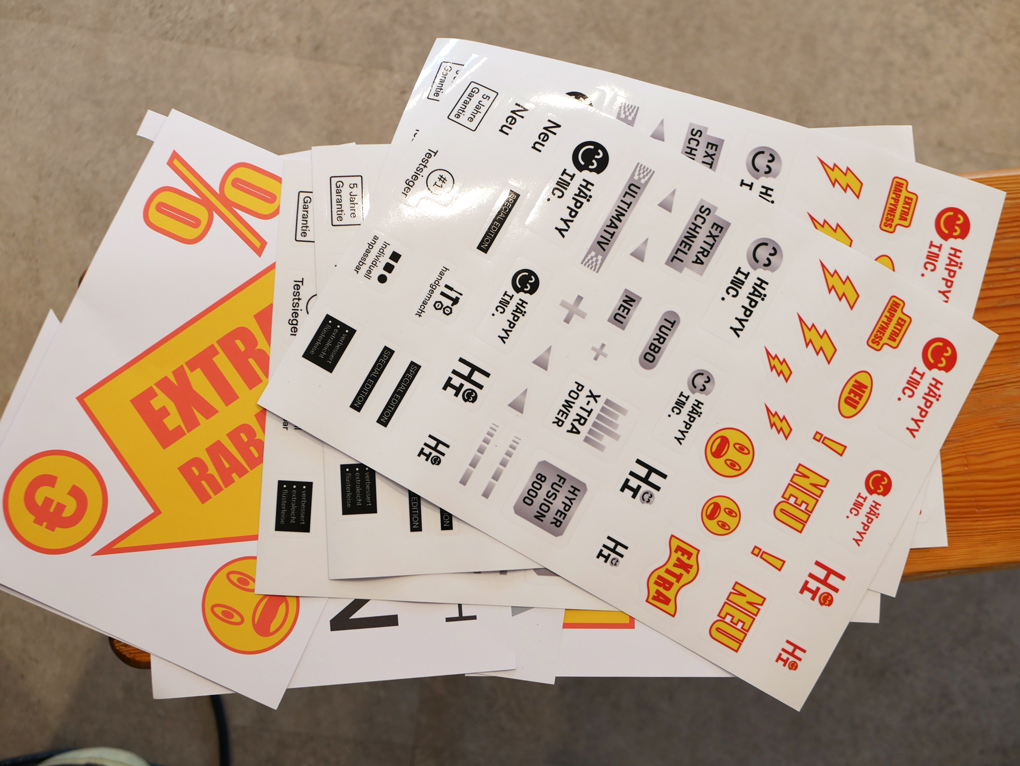 Sebastian had also designed us cool Häppyy Inc. branded stickers that the teams could use for their product posters. / CC BY Kati Hyyppä