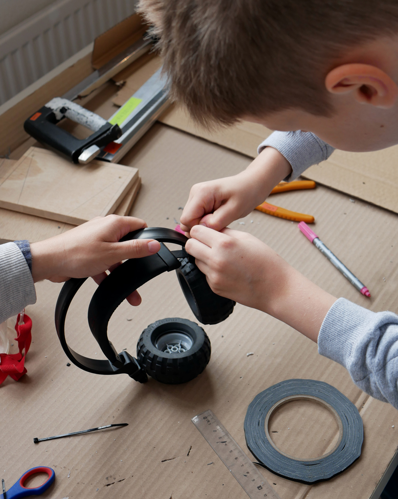 The 'Soundmaker' team's headphones were made out of broken headphones and Lego Mindtstorms wheels. / CC BY Kati Hyyppä