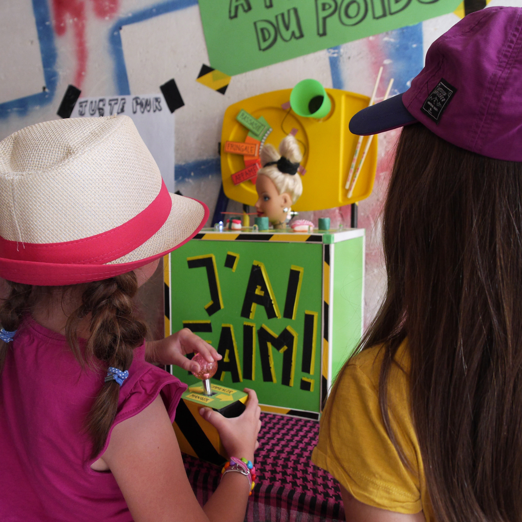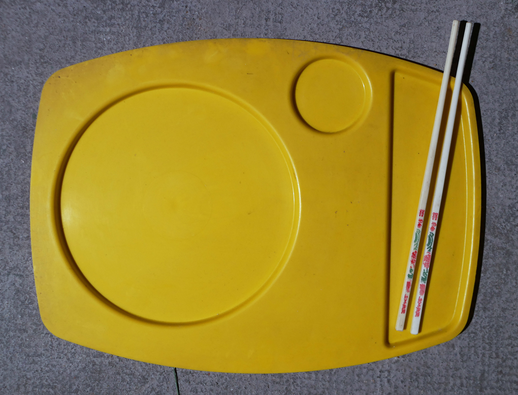 This cheerful retro tray and the chopsticks found in the storage room provided a perfect background for the score counter, which indicated Barbie's hunger level. / CC BY Kati Hyyppä & Niklas Roy