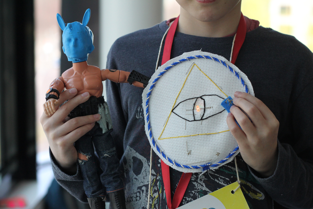 Ready! Next to the patch is another creation from the superhero hacking workshop. -- CC BY / Kati Hyyppä