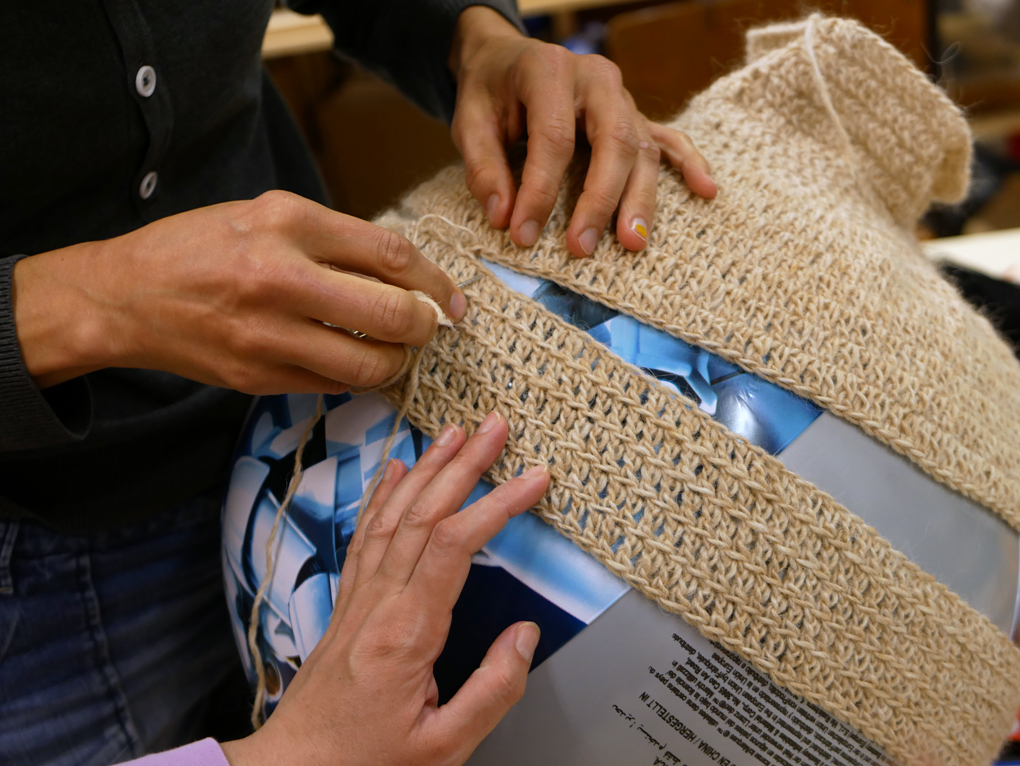 The skin was crocheted and carefully attached over the ball. / CC BY Kati Hyyppä