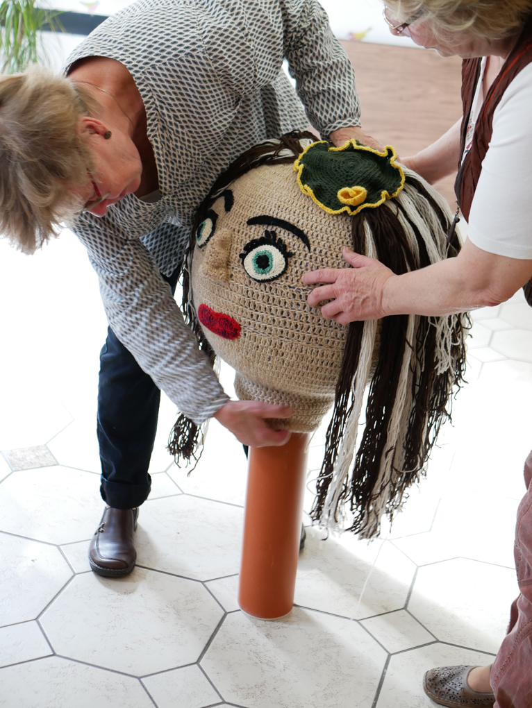 Meanwhile Louisa was being created, the Kreative Hände group worked on Tusnelda's head. They were into reycling and the perfect material for the skin was an old underskirt. / CC BY Kati Hyyppä