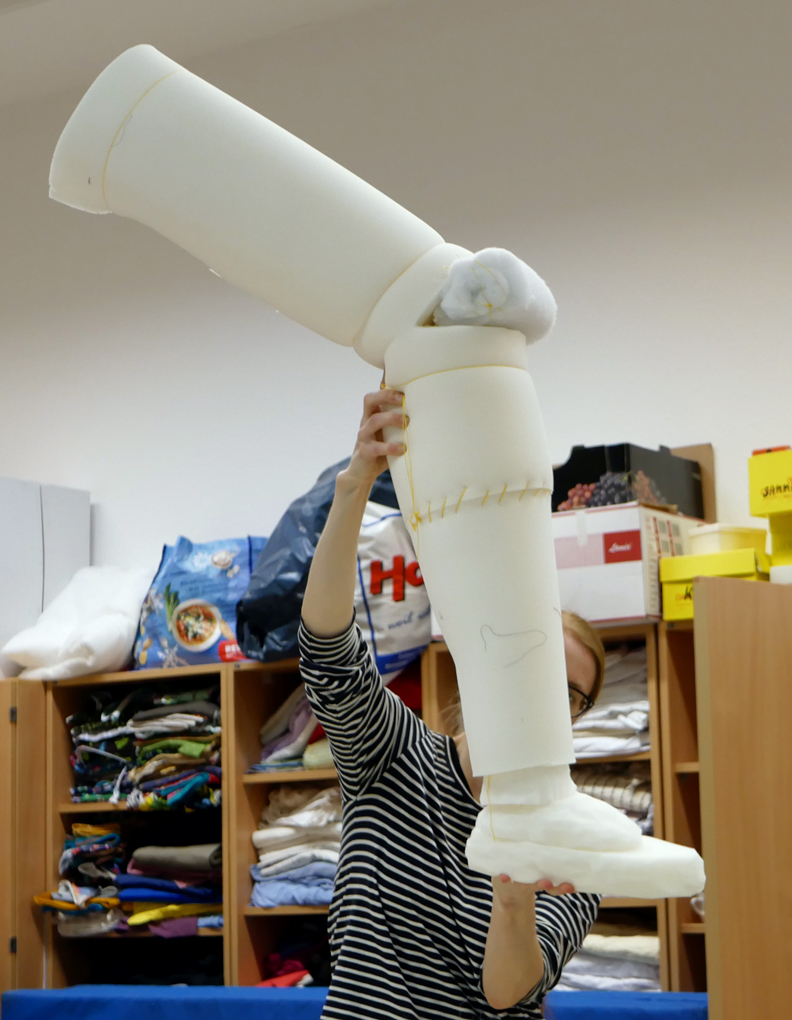 Tusnelda also got dark blue trousers and an old pillow as a hip. / CC BY Kati Hyyppä