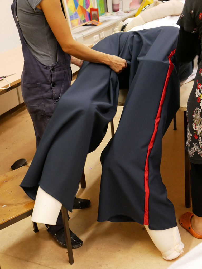 Fitting the giant pants. / CC BY Kati Hyyppä