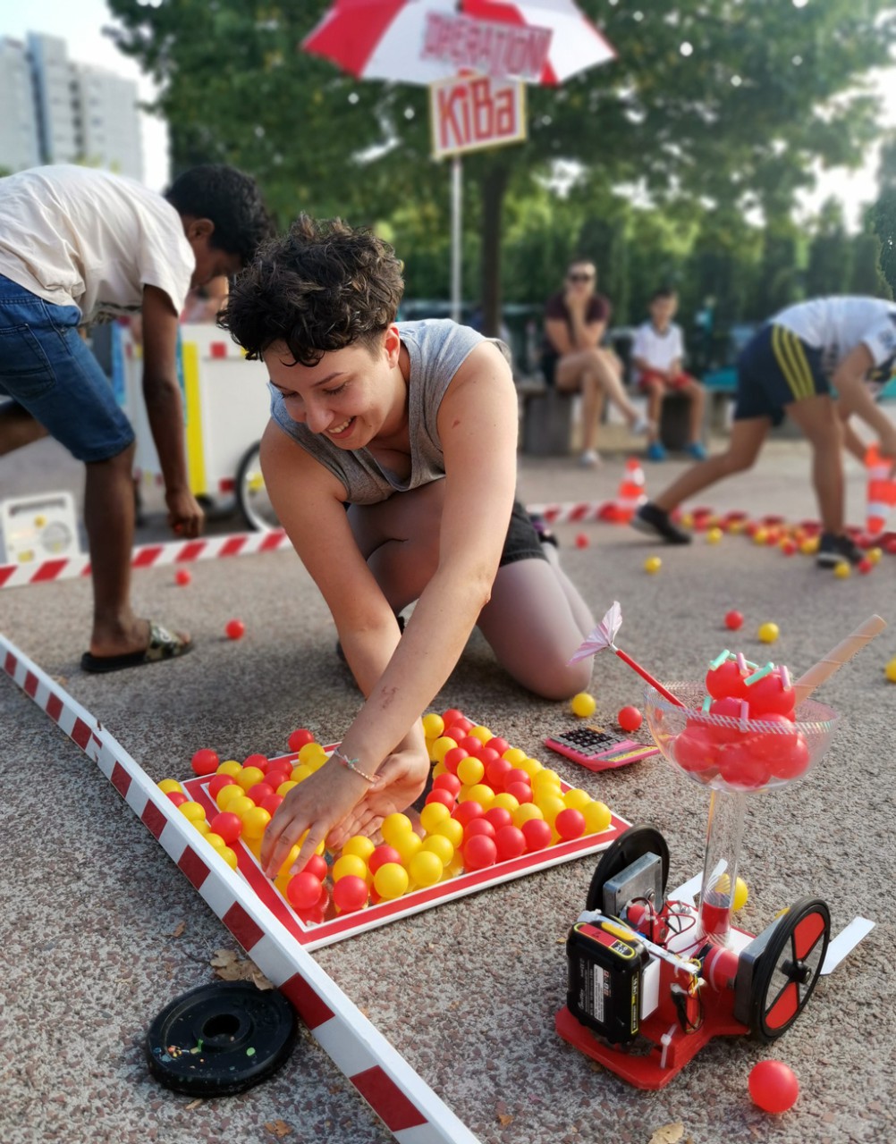 In the end of the game the players could count how many balls they had collected, while others were already clearing out the play field for the next round. / CC BY Niklas Roy & Kati Hyyppä