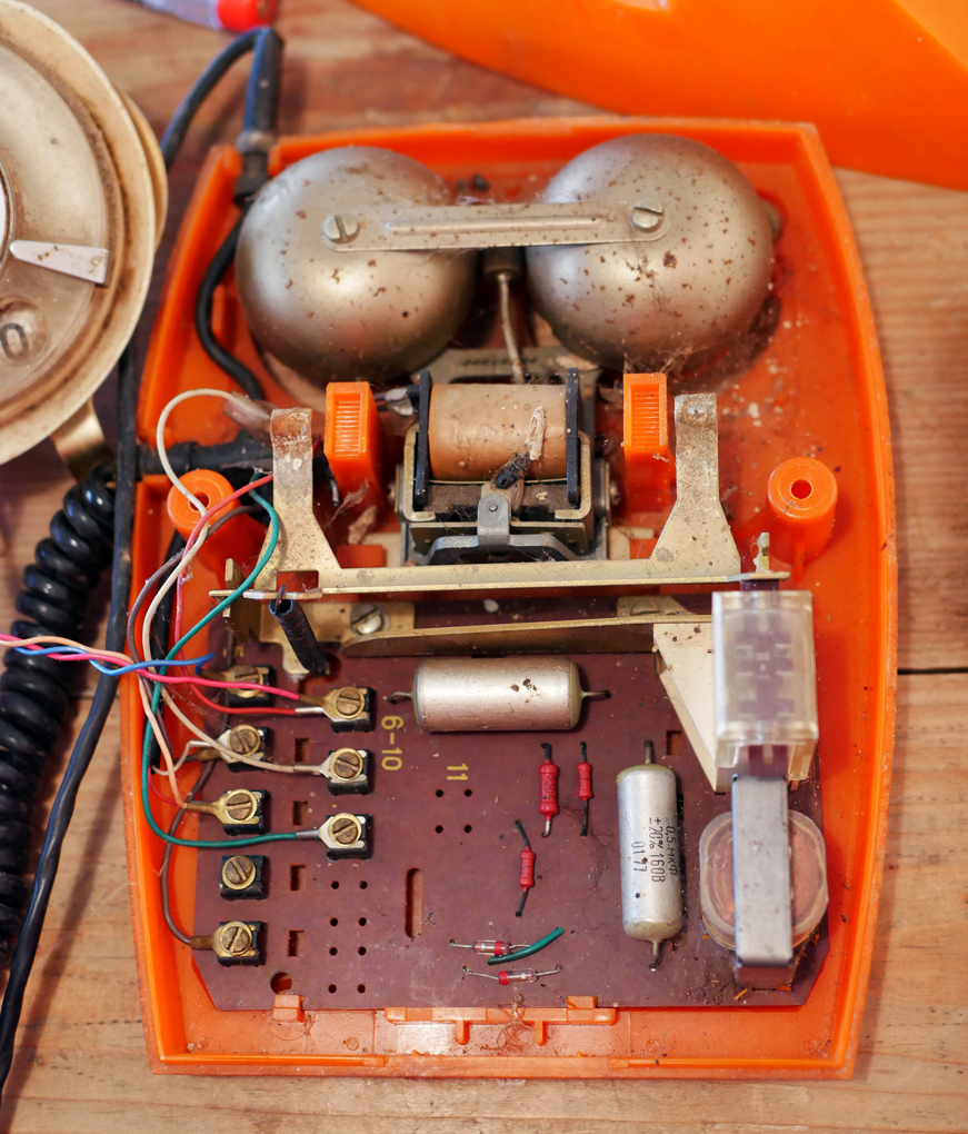 When opening the telephone, it became clear that it had been the home of various insects. Some cleaning had to be done before investigating the parts in more detail. / CC BY Kati Hyyppä