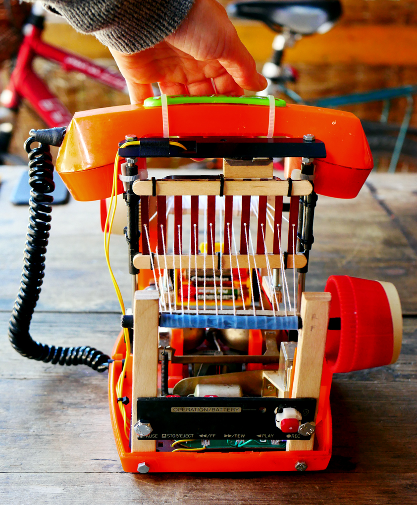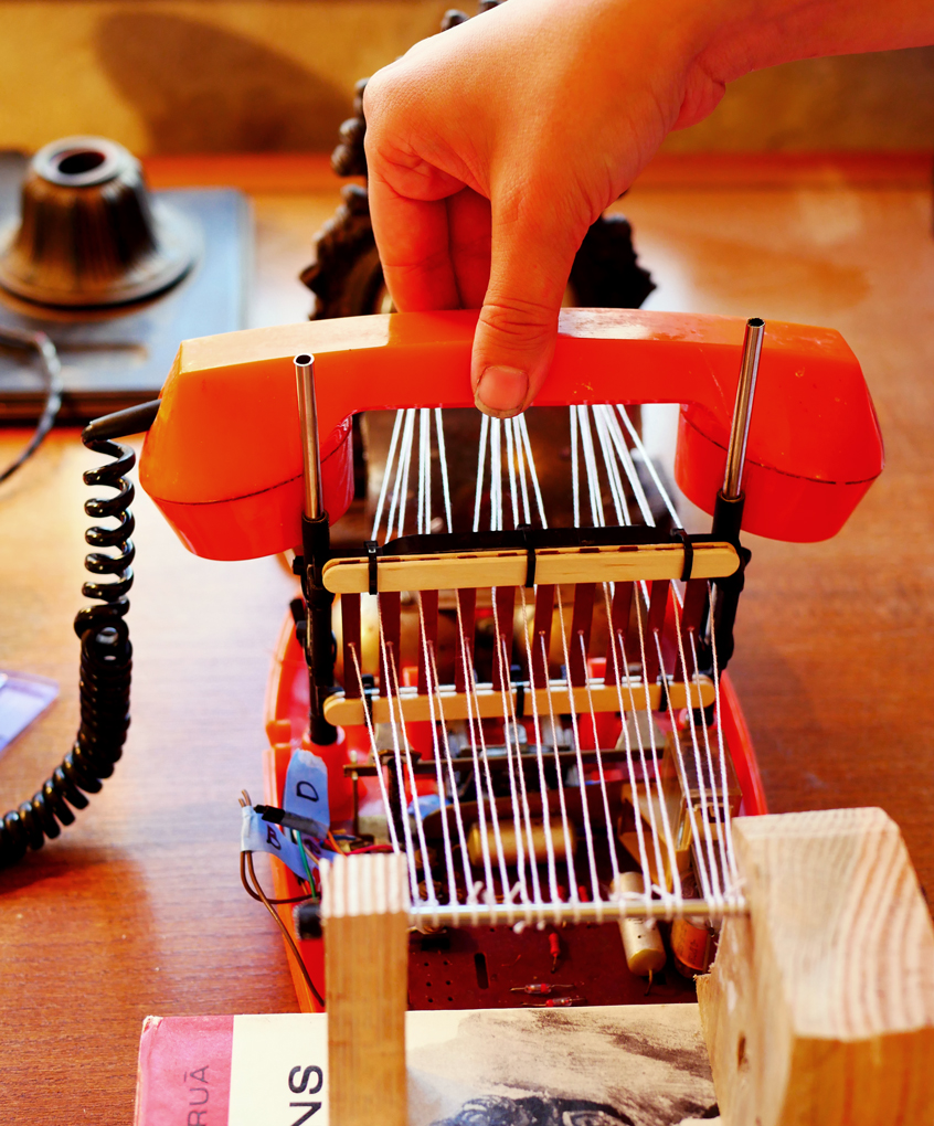 Among the electro-trash was this cute little telephone, which had once upon a time served Ugis' family. My family also had a similar one (with a duller color) when I was a child. I thought that this poor guy deserved still another chance to lead a respectable life - as a loom. / CC BY Kati Hyyppä