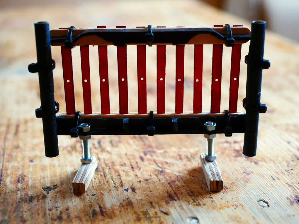 A loom has usually heddles, through which the warp yarns pass. I used a rigid heddle design, where the heddles are fixed on a single shaft. The idea is that this shaft can move up and down, so I made sliding contacts for it out of an old radio antenna. / CC BY Kati Hyyppä