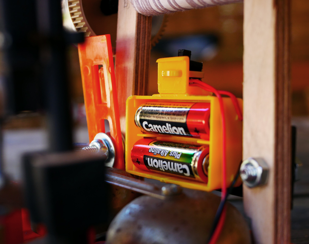 The battery holder and power switch were placed on the back of the loom. / CC BY Kati Hyyppä