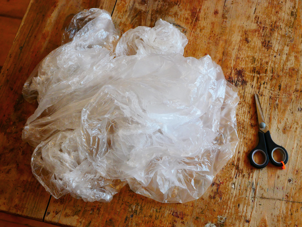 We also had plenty of transparent plastic bags used for buying vegetables and fruit. They were also repurposed and cut into thin slices for weaving. / CC BY Kati Hyyppä