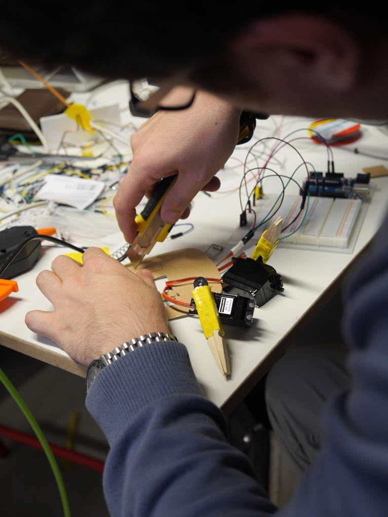 Some participants begun the workshop with systematic thinking of servo movements -- CC BY / Niklas Roy & Kati Hyyppä