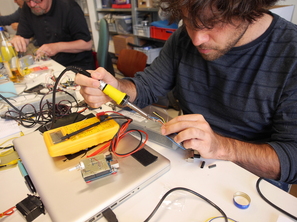 Focused soldering of the power supply wires, should not make a mistake there... -- CC BY / Niklas Roy & Kati Hyyppä