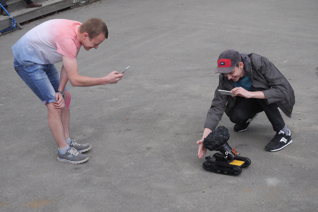 Presenting to robots to the curious festival crowd. / Photo by the festival photographer Maksim Emelianov
