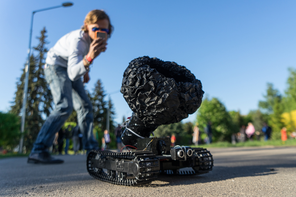 Instant social media fame for the black hole robot. / Photo by the festival photographer Maksim Emelianov