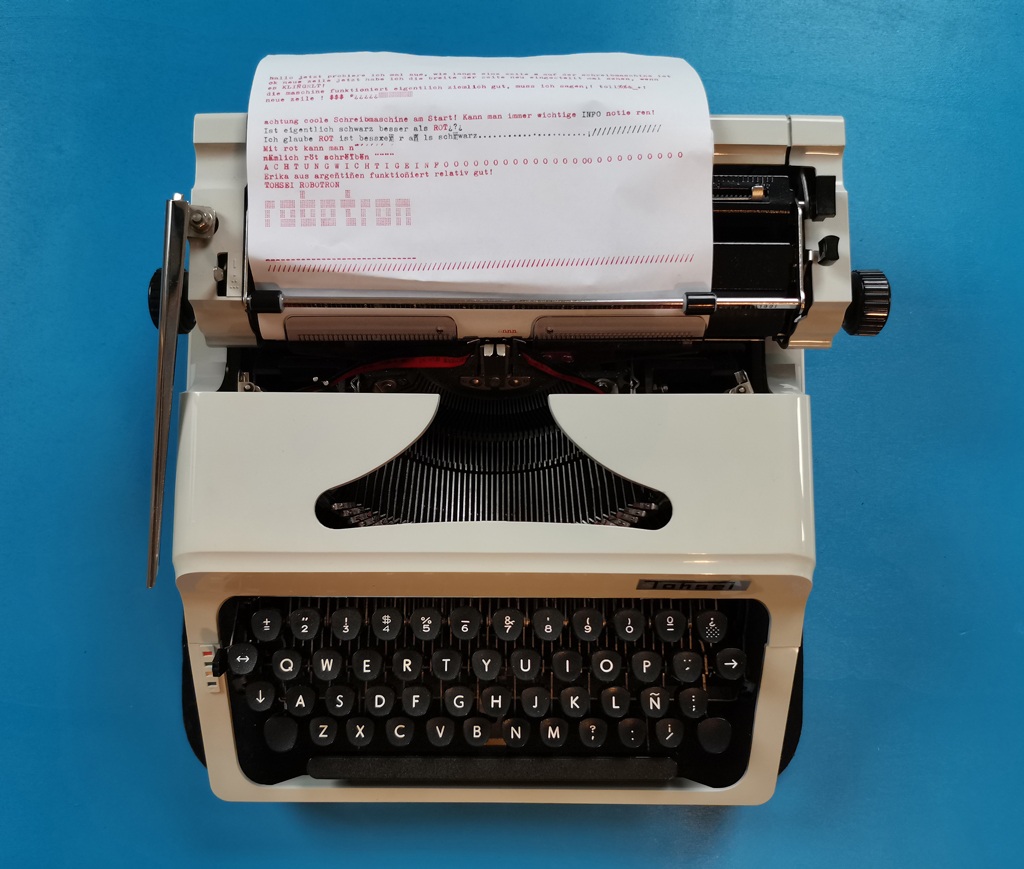 We also sourced locally an old Robotron typewriter to collect some metadata for the images. We discovered soon that the machine had Argentinian layout. / CC BY Niklas Roy & Kati Hyyppä
