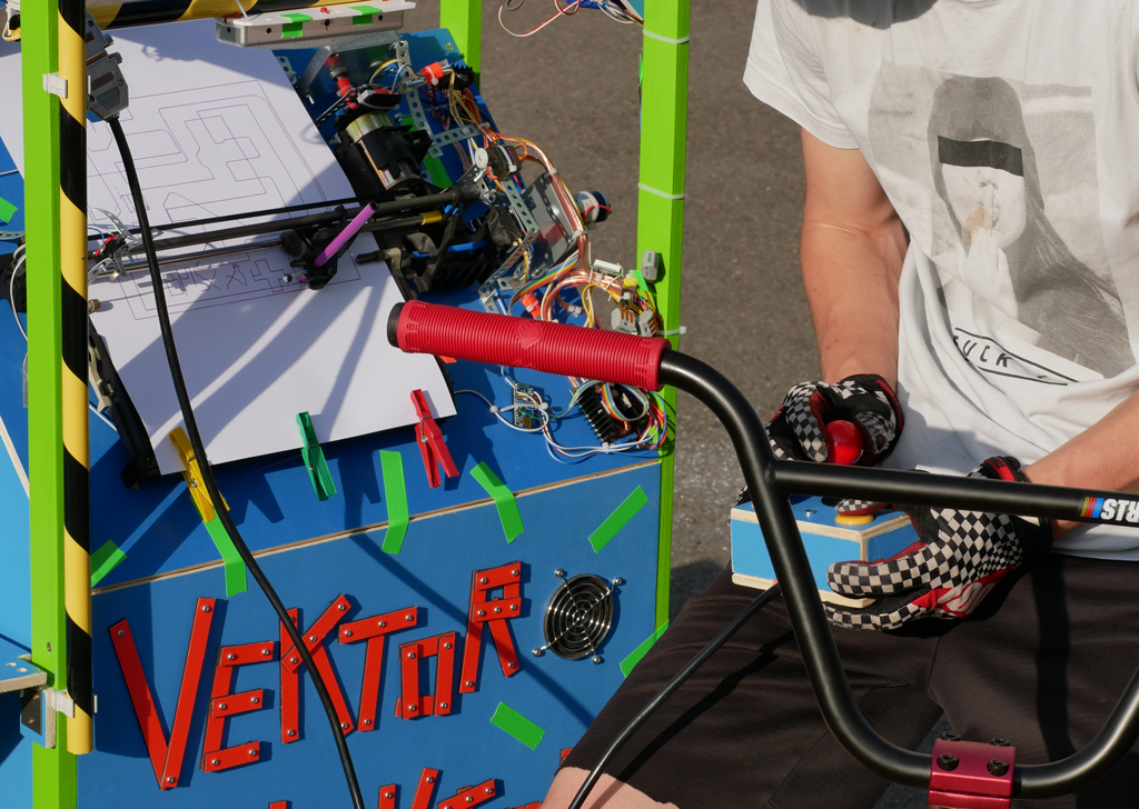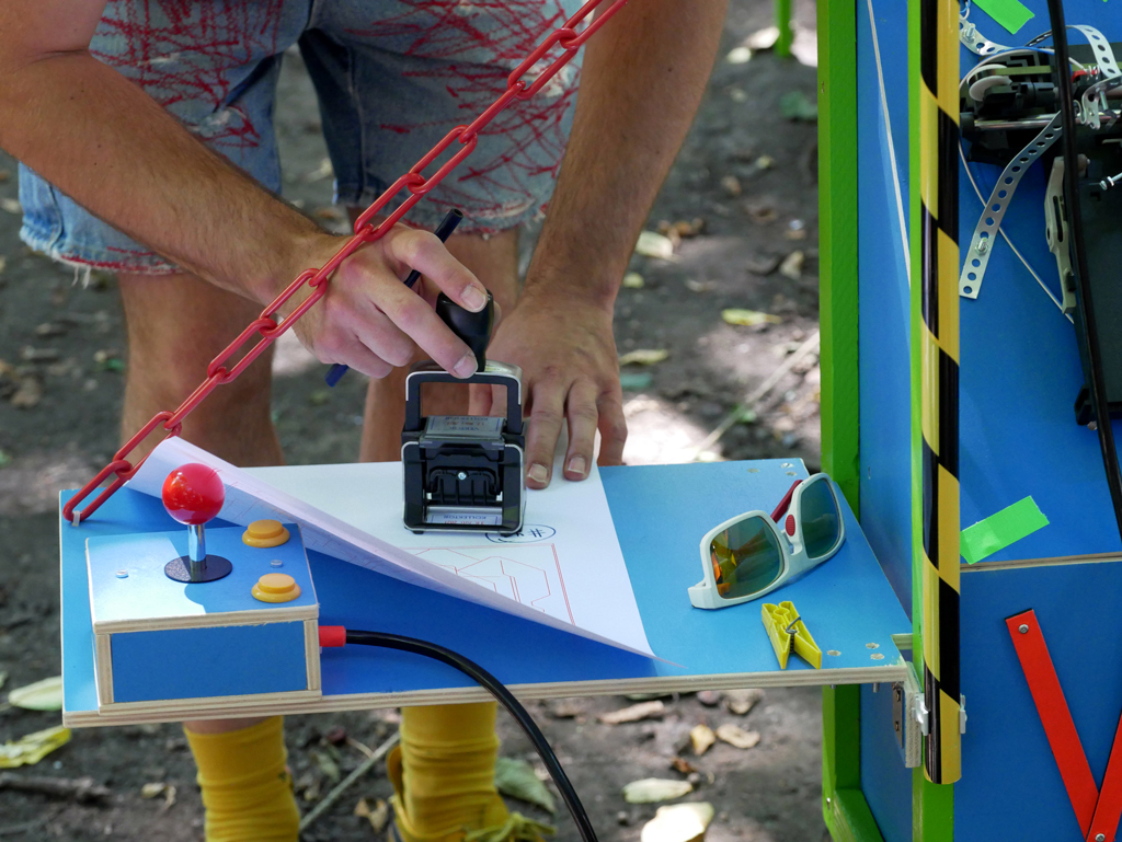 Testing the machine. The paper drawing is made on an A3-size paper, which people can take with them when the creation is finished / CC BY Niklas Roy & Kati Hyyppä