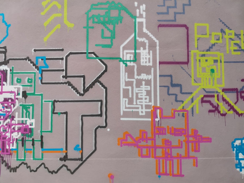 Another sprayed vector collage at the entrance of the community garden Zietenaugust. / CC BY Niklas Roy & Kati Hyyppä