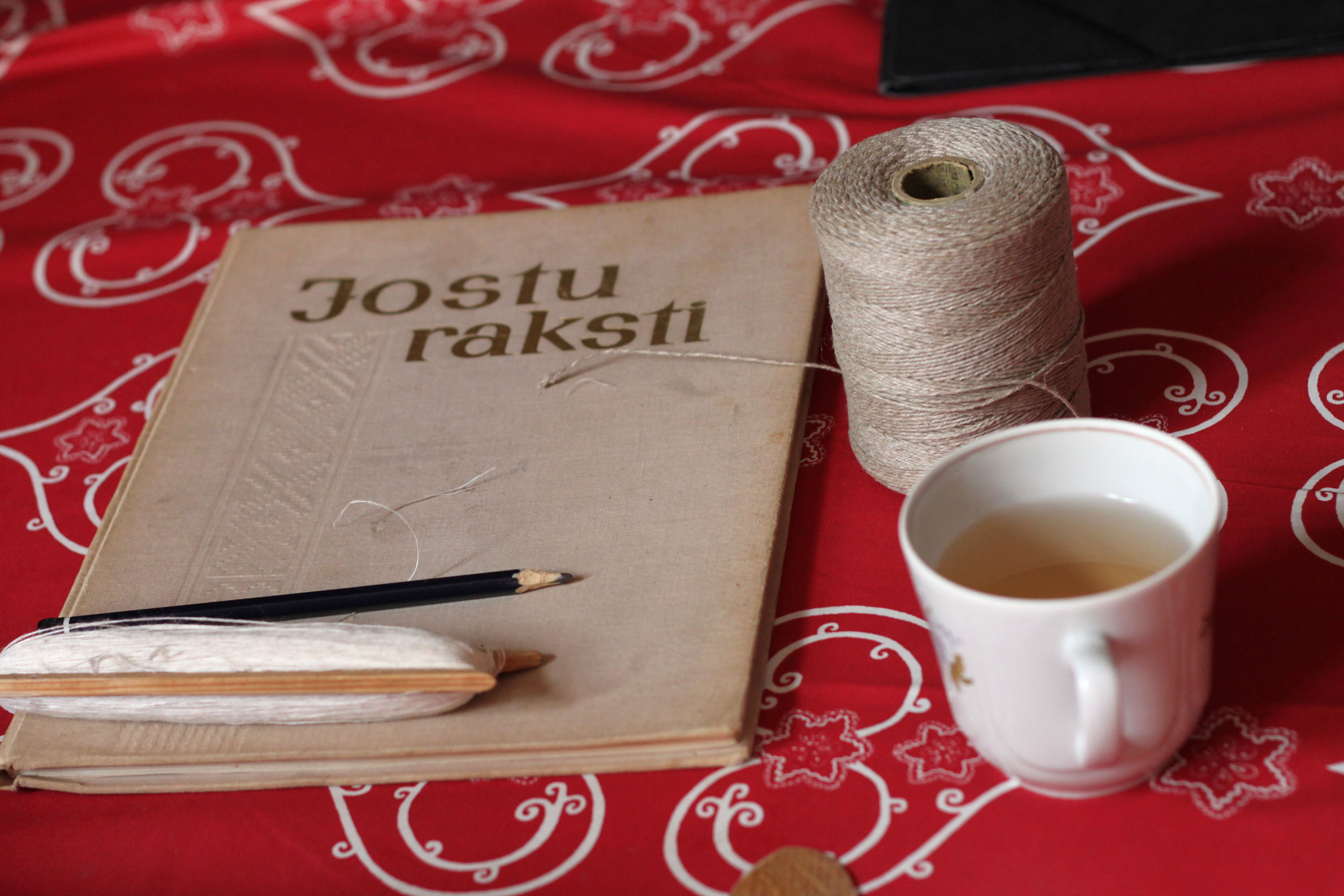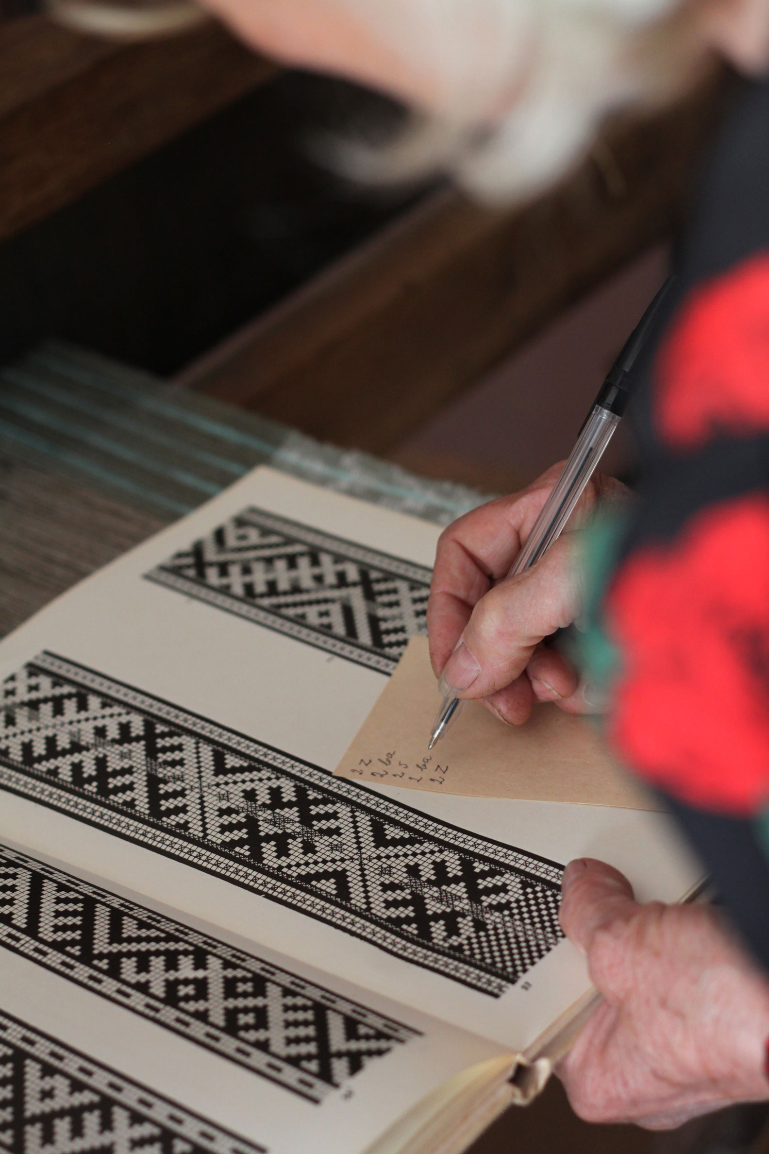 Laima also showed us a book containing instructions for weaving belt patterns. / CC BY Ramyah Gowrishankar & Kati Hyyppä