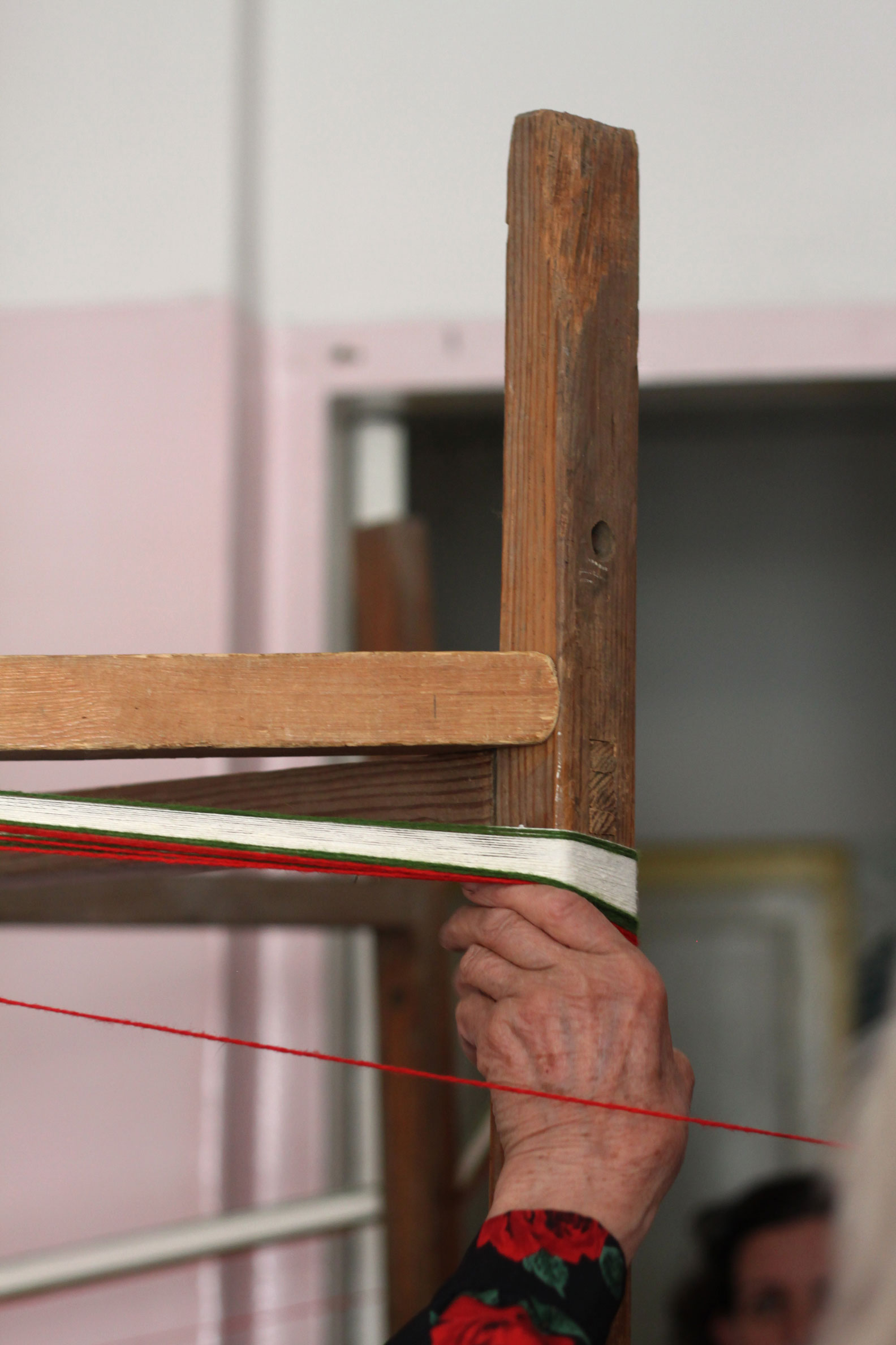The next step is to lift the bottom yarns up in order to prepare the heddle. / CC BY Ramyah Gowrishankar & Kati Hyyppä