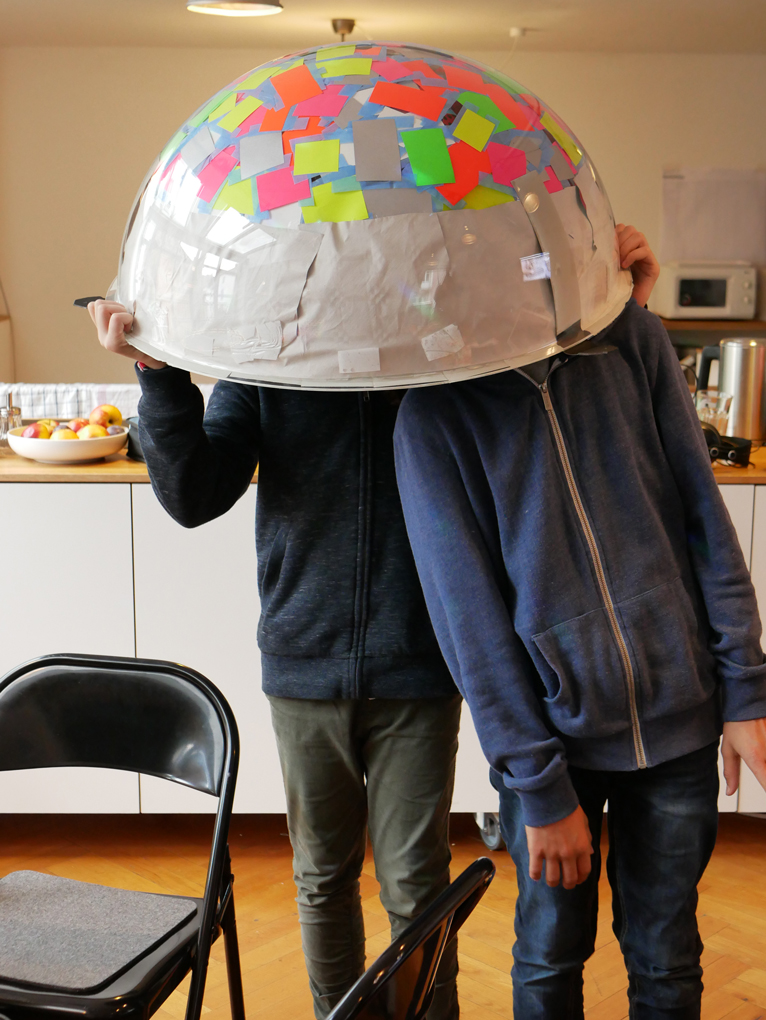 Although the acrylic half-spheres were very elegant in themselves, our aim was to cover them in kitschy DIY materials. / CC BY Kati Hyyppä