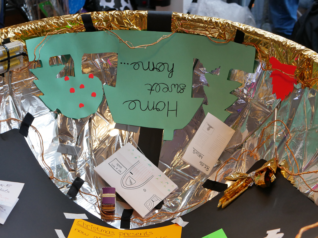 The idea was to place hanging elements in between the tinsel, which illustrated nice things to enjoy in the Internet. / CC BY Kati Hyyppä